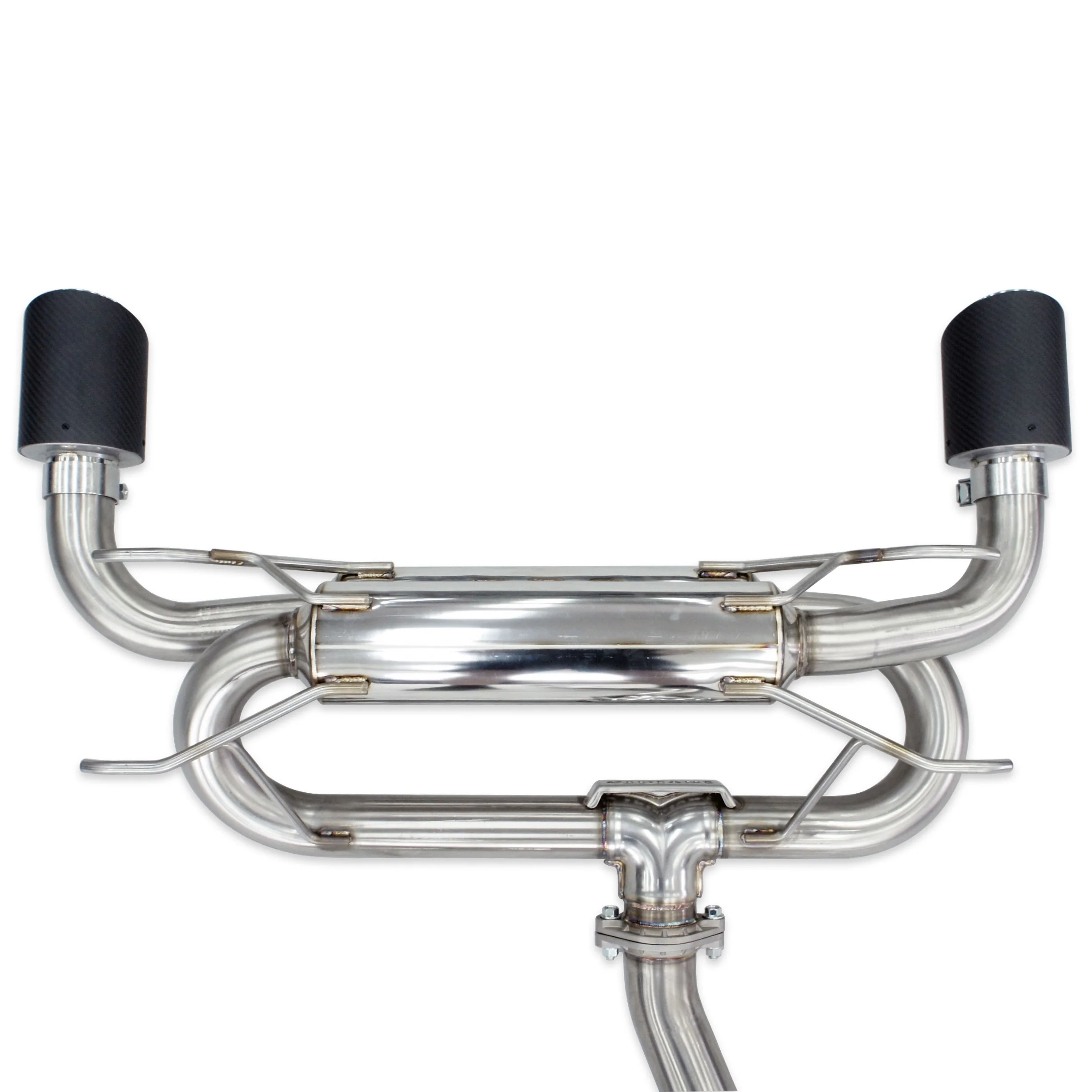 First, a 3D scan is take of the underside of the car to ensure fitment is 100% correct.Ā Next, grade 304 Stainless SteelĀ (with the exception of their titanium systems of course) is selected for all piping, mufflers and flanges. This particular grade is chosen for its strength, durability (ability to withstand the elements),and its ability to be formed and welded with relative consistency and ease. Cast flanges are then used which ensures 100% correct fitment every time, no leaks or additional stress points, and long lasting strength.